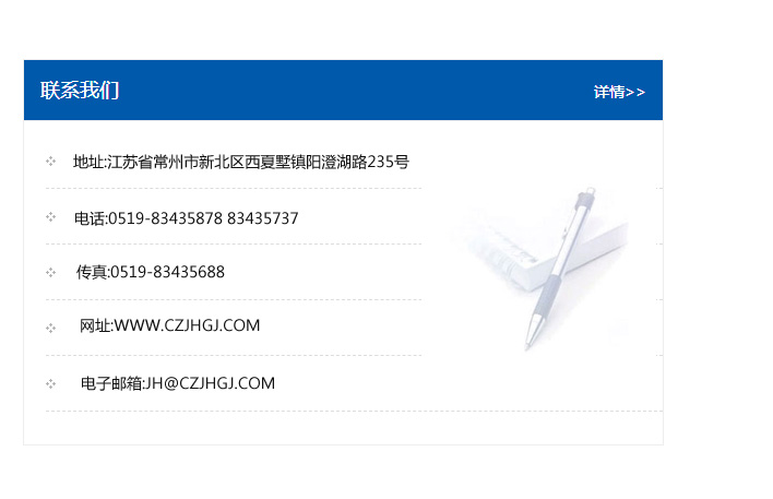 傳真:0519-83435688    郵編:213135    網址:WWW.czjhgj_com.yitonghaixian.com    電子郵箱:JH@czjhgj_com.yitonghaixian.com